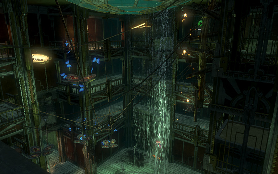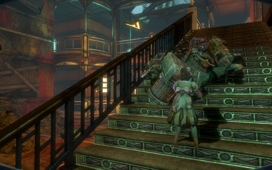 i finished the evening playing some more bioshock 2. i figured out how to bind special commands to keys, so i can do things like freeze the action or toggle off the display in order to take better screenshots. bioshock 2's "editability" isn't as great as skyrim's though, and nowhere as easy to use.
