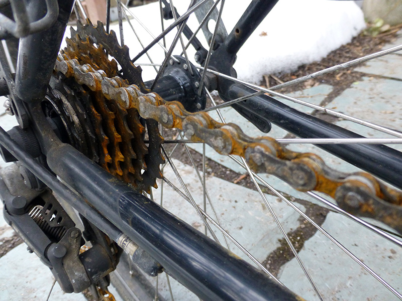 i might've washed the salt off the bike but now all the chain and gears are covered in rust. my thorough cleaning about a week ago all seemed to be for naught. maybe it's the material to blame? if the hardware was better, perhaps they might be more rust resistant? maybe on my next round of hardware upgrade i might look for cassette/crankset/chain that have better corrosion protection, if that even exists. i keep on thinking about the owner of the bike shop, what he would say if he saw all the rust. so i ended up oiling the chain, but at some point i'm going to have to do another deep cleaning.