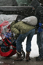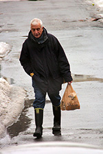 it wasn't until evening that the snow finally started to stick. at most maybe we had about a centimeter of accumulation, hardly worth the effort to shovel. i began making my risotto around 6:30. i thought i had some white wine left but it turned out to be red. making risotto with red wine looks pretty awful, so i substituted a whole cup of vodka instead. the final result was delicious but i did have a few uncooked grains of arborio rice. i ate dinner while watching the red carpet coverage on E!.
