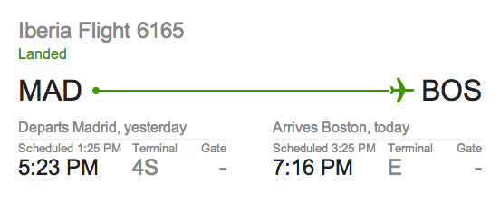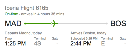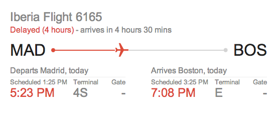 when i checked the flight status in the afternoon, the estimated time of arrival had changed: apparently there was a 4 hour the delay and now the flight wouldn't be landing at logan airport until after 7:00.