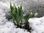what little snow that'd accumulated from last night i went out this morning to shovel. the snow on the sidewalk had already been compacted so i used the overturned edge of the shovel to noisily scrape away the ice. afterwards i probably had the cleanest sidewalk on my block. the snow in the backyard was soft slush that i easily removed, making sure not to damage the few snowdrops emerging from the ground.