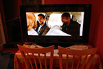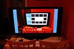 david finally came home around 9:30. with his help i was able to stand up the HDTV and set it on the dining table for testing. it took me a while to get an image, and i was starting to get worried that maybe something else was broken. the first thing i got to work was to display a photo on the SD memory card reader.