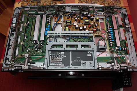 the final step was putting back the rear cover with its nearly 3 dozen screws. when that was done i fired up the HTDV one more time. i managed to get the menu to come up which is another good sign. i'm pretty sure it's fixed, i just need my roommate's help to stand the HDTV upright so i can watch it in all it's glory.