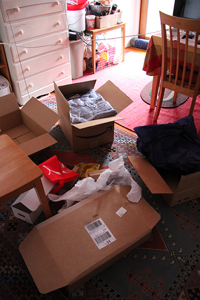 i managed to consolidate at least 3 boxes of items - polo, amazon, gap - into a single box for frances. the box was to capacity, but when i returned home from the cafe, there was yet another package waiting for me on the doorstep that i somehow managed to add to the shipment. most of the items were clothes, so i could really squeeze everything together. the final box weighed 24 lb. and the shipment cost was around $90. i carried it on the bike to drop it off at the post office around 4:00.