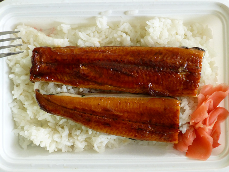 by then it was almost 2:00. i hadn't had breakfast or lunch yet, and my mother gave me some roasted eel with rice to take home with me.