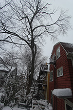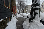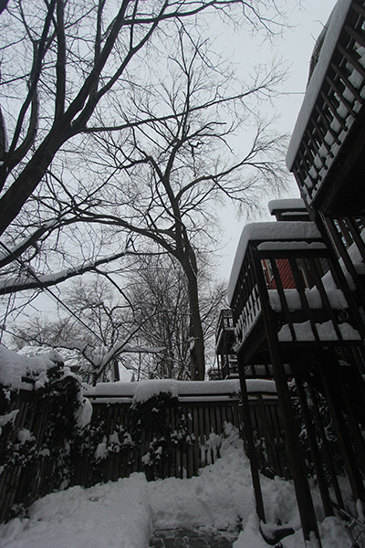 by the late afternoon around 3:00 the snow had pretty much stopped. i went out to shovel the sidewalk one more time, this time scraping away the compacted snow layer down to the bare pavement. while i was shoveling i heard a loud cracking sound coming from a tall oak tree a few houses down. i carefully went around the tree looking for the crack but i didn't see it, although i did warn a few neighbors about what i heard and to move their cars if possible.