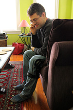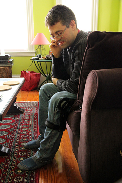 david wore his knee brace, which he had from a past accident. it wasn't like his knee was injured or anything, but he wanted to bring the brace back to spain and there was no more room in his suitcases, so he figured he'd wear it during the flight. he told me the one advantage this might have is they might let him board earlier figuring he's a handicapped person.