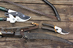 we started by pruning off the black knots from the 2 plum trees. we've been pruning and treating it with natural fungicide for the past few years and it's gotten a little better, but the large branch that overhangs into our backyard neighbor's yard is pretty much covered with black knots and the whole branch should be removed. it's tough work, involving constantly moving the ladder and switching from the various pruning tools. my shoulder pain made the work a little uncomfortable, and we couldn't find our pruning saw for some of the larger branches that needed to be removed.
