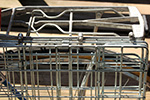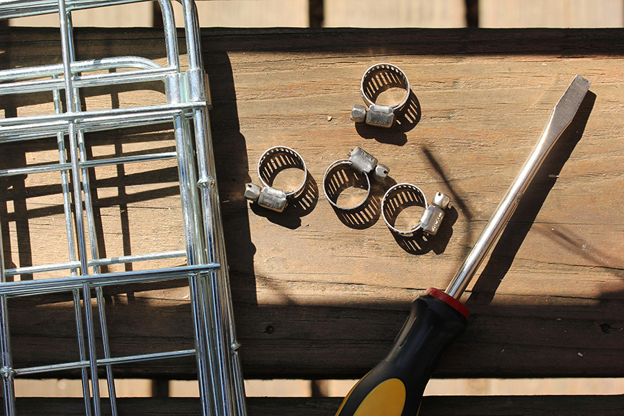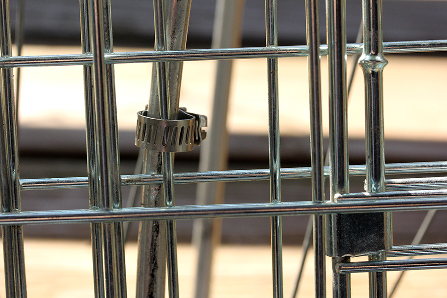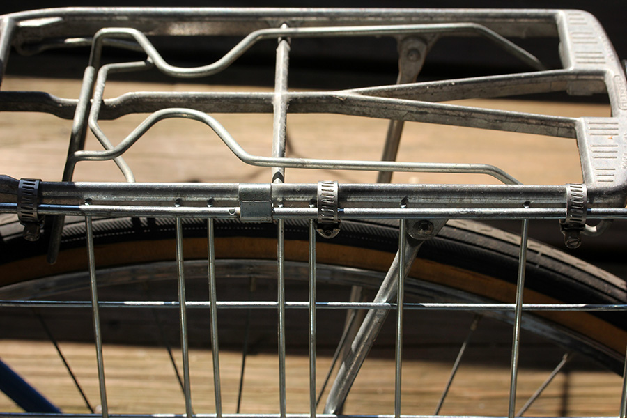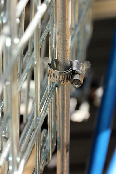 the nickel alloy stainless steel hose clamps (SAE size #4) i got yesterday from home depot are definitely a lot better than the zinc-plated ones i got from harbor freight tools. and when i attached them to the rear rack of my ross 10-speed and to the folding basket, they were satisfyingly sturdy. the one thing i did was to flip the direction of the adjustment screw so they'd face downwards and not stick out. i'd be seriously surprised if the basket manages to fall this time. i wish i'd known about hose clamps when i first installed these baskets (now just one), they're definitely the way to go.