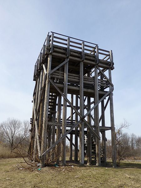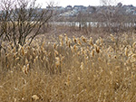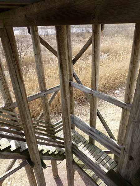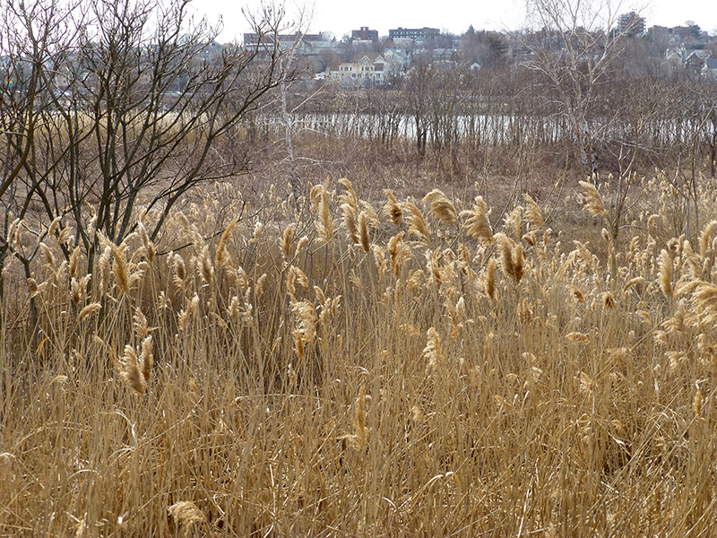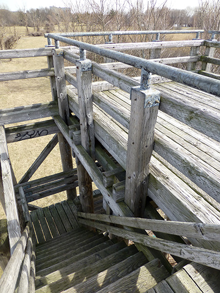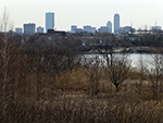 coming back along the mystic river reservation, i climbed up the wooden observation tower to check out the view. even though the highway is nearby, the place is sufficiently sketchy that i probably wouldn't have done it if i saw anybody else nearby. but since the place was empty, i checked it out. at this time of the year there's not much to see. i wonder if it'd be a nice place to see the 4th of july fireworks? since it has a nice view of the boston skyline across the mystic river. peering into the marshland, i was almost half expecting see a dead body; it's the sort of place one would expect to find disposed human remains. i quickly climbed down and hurried home.