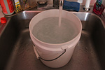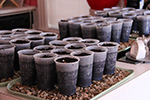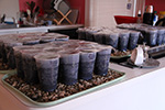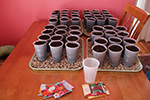 i began by filling 48 cups with miracle-gro potting mix. since i put them on trays filled with crushed gravel, they were liable to tip over so i had to be careful. next came the soaking, where i dip them into a bucket and let the water soak up from the bottom. once each cup was properly saturated, they were heavy enough that there was less change of it tipping over.