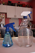 since the top of the soil was still dry, i had to spray the cups. i had a spray bottle (recycled from some empty household cleaning container) but the sprayer was broken. so i went down to the dollar store, hoping their early stock of garden supplies would contain some spray bottles.