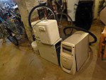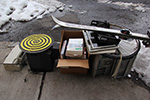 do some more cleanup in the basement! here was one place where my dilated pupils weren't a problem. i ended up tossing a bunch of things onto the sidewalk: 2 PC cases, a bread machine, a dartboard, a box of old (late 1990's) computer/programming books, a pair of skis (gift from ed), an epson 740 printer, a bent bicycle wheel with an attached u-lock, and some protective LCD screens for CRT monitors. i also tossed out a small 13" sony trinitron television.