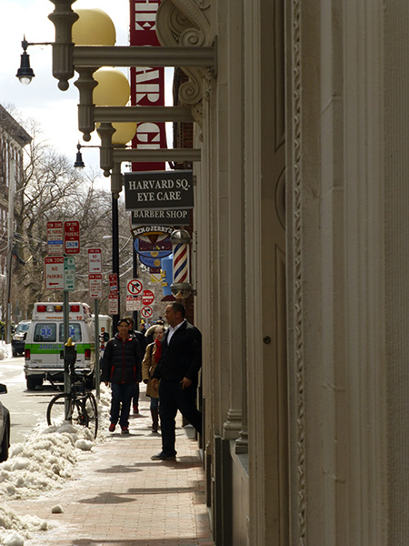 the sky was mildly overcast so the sun wasn't a problem. the bigger problem was all that blinding white snow on the ground. i basically cut across harvard yard with my eyes nearly closed, angrily squinting at anyone who passed me by.