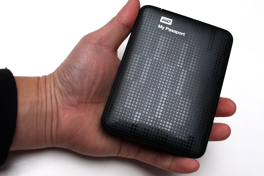 in the late afternoon my package finally arrived: the western digital (WD) "my passport" 2TB USB3.0 portable hard drive. i bought it for $107 which i think is a bargain since the price for an internal 2TB 2.5" SATA hard drive is $180. it took me a while to open the box because i couldn't really see anything up close. i was basically just fumbling with a pair of scissors, trying to find the opening.
