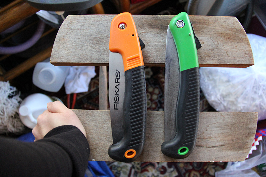 while cleaning out the back of the honda element to make room for the desk, i found the folding pruning saw in one of the side pockets. it's almost identical to the fiskars saw i bought last monday, except this one's green. i'm trying to remember where i bought that saw in the first and i think i got it from lowe's at some point. later my father and i loaded up the desk, padded with a moving blanket and a pillow to keep the furniture pieces from banging into each other.