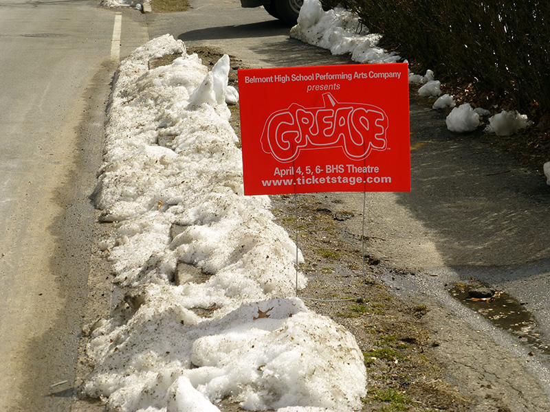 throughout my ride across belmont i saw signs for the belmont high school performance of the perennial theatrical favorite grease. more than 2 decades ago my graduating high school class did grease as our senior class play. i had a minor part as both a greaser and a square, the only time i've ever dabbled in the performing arts. i'm kind of tempted to see what this new generation of kids are doing with it.
