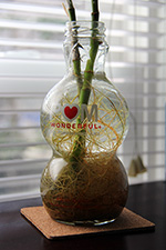 i know i can just easily digitize all my music cd's and be done with them, but there's something about the tangibility of an actual physical disc that's part of my listening experience. i moved out my wardrobe (one of those cheap light versions with wheels) and then the television as well. not much good an analog television does nowadays when i can get any reception on it. one good thing about having the desk by the window is now i have a sunny space for plants.