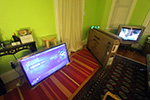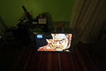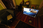 the final test of the evening was to see how well the HDTV would work as a computer monitor. i found my HDMI-to-DVI cable, then used a DVI-to-mini-displayport adapter to connect to my macbook pro. i then closed the laptop so i could operate in clamshell mode, and used the magic trackpad as my input device. at first the desktop spilled over the edge of the screen, until i discovered the fine adjustment slider in the display control panel. the wireless trackpad worked very well: with a bluetooth range of 33 feet, i could be at the far end of my living room and still be able to move the cursor around the HDTV screen. it would be nice however to have a wireless keyboard as well.
