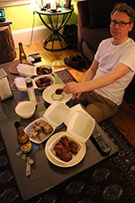 drew came by around 7:30 with a pack of belgian beer. he'd been at the harvard library all day, preparing the paper he's giving tomorrow at the conference. after washing off the coffee stains from his new shirt, we ordered some wings. later i showed him some 3D photos and movies on my HDTV.