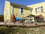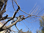 the weather was barely peeking above the 40's but it was a sunny day with blue skies, a perfect day to get some pruning done. i wouldn't be much help since i couldn't full lift my left shoulder and couldn't carry anything heavy with that arm, but normally during these kind of backyard operations, my father's the one in charge of the chainsaws while i supervise from the ground, clearing the branches as they fall.
