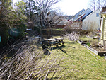 the target was the backyard maple, which was once again growing too tall that it was blocking valuable sunlight from the garden during the summer. we'd pruned it before, but drastic pruning always bring forth drastic regrow, as the tree generated fast-growing sucker branches. our original plan many years ago was to supply chop down this tree and plant something more useful (and not as tall) in its place, maybe a few fruit trees, or perhaps something with pretty flowers or fragrance. but this tree has sentimental value, and we learned it's not so easy to kill it, especially with deep roots.