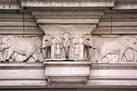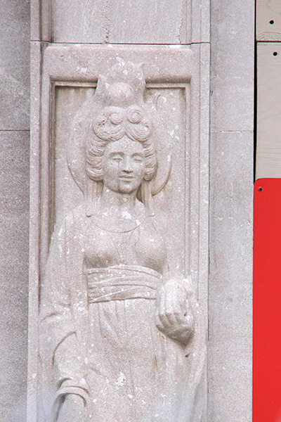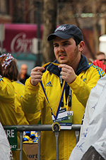 i rode my bike a few blocks and parked at the intersection of arlington and stuart. from stuart i made it as far as clarendon street (admiring some nice doorway carvings at 300 stuart street), before heading up to boylston, behind the trinity church. i wanted to get closer to the finish line one more street down, but with all the pedestrians and barricades, it was nearly impossible.