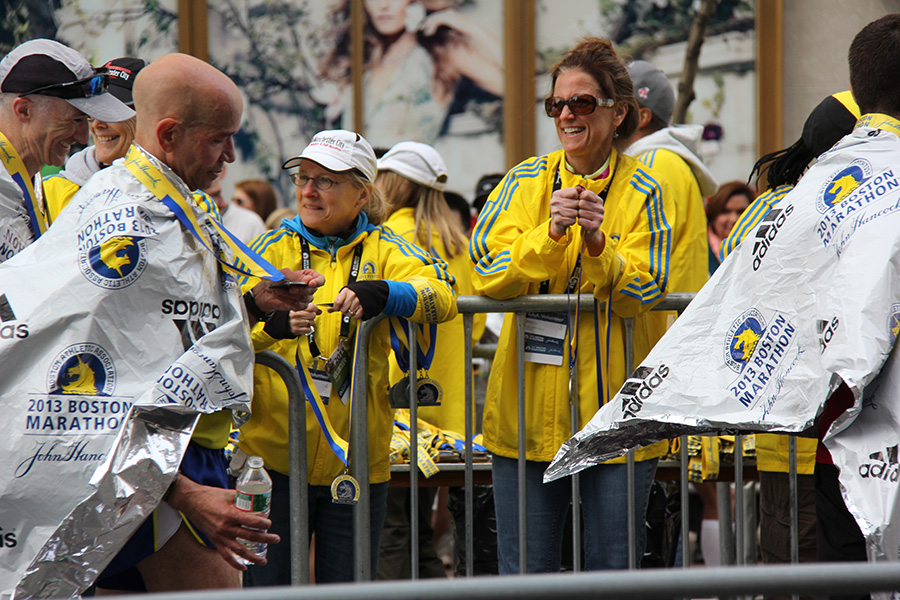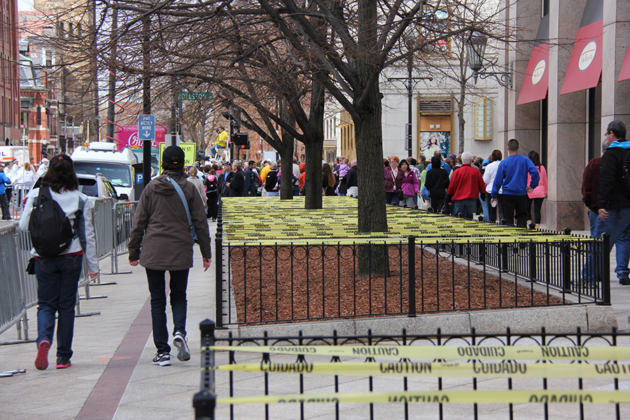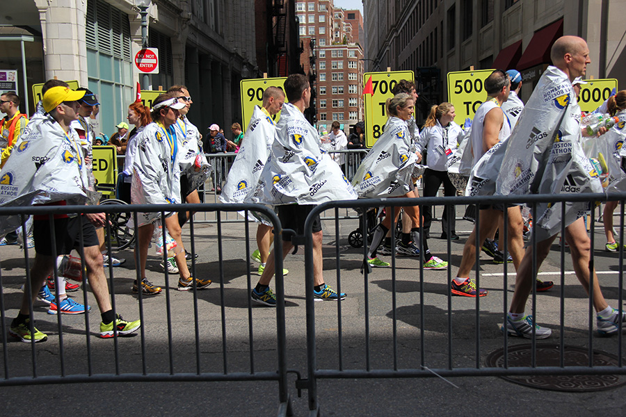 boylston street was blocked off to car traffic starting from arlington street all the way to mass avenue. i parked my bike at the intersection of providence street and arlington, and walked down boylston towards copley square. i only got as far as berkeley street before the barricade prevented me from going down any further. i turned left on berkeley, watched the finished runners being funneled at the intersection of berkeley and st.james, and then returned to arlington street.