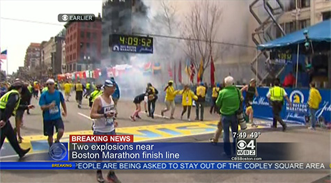 then at 5:00 i turned on the news. i wasn't even sure what was going but there seemed to be breaking news. bad news about the marathon. still not quite sure what had happened, but i told my parents to turn on their television because (i'm guessing) there might've been an explosion. at first i thought it was an accident (like a gas main break) but after a minute i realized what they were saying was it was a deliberate act, that somebody had set off not one but several bombs near the finish line around 2:50.