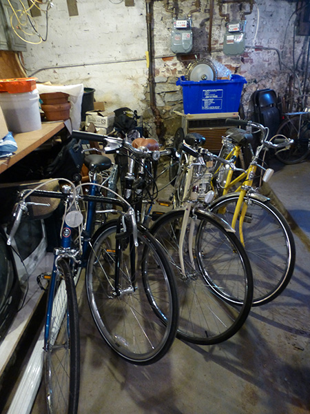 inspired by the sale, i went down into my basement and retrieved 3 more bikes i wanted to sell: the schwinn le tour iii (missing a rear wheel), the ross gran tour ii (left here by pau), and the jetter o'neal (free). the only one that can remotely be ridden is the ross. the jetter is all rusted stuck. the schwinn is in really great shape, just needs a back wheel. maybe i can take the rear wheel off of the jetter and put it on the schwinn; a working bike sells better than a broken bike. even minus a rear wheel, i think i can still sell it as is for $60. the ross i can probably get $80-100. the jetter, for the frame, maybe $20-40.