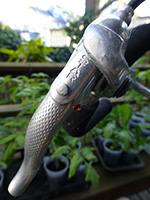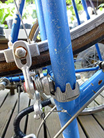 came by and told us the secret was prying off the cap to reveal an adjustment screw hidden underneath. apparently he knows a lot about bikes! evan on the other hand knew almost nothing about bicycles, and asked if it was normal for the handlebars to drop like that. i got a sense that evan wasn't in love with the bike, and would've preferred a hybrid bike instead. alton (the rastafarian) helped me sell it though, said all road bikes were like this. he also came back with some grease to go inside the stem tube ("that feels good!" he said as he poked his finger into the hole). evan tried to bargain down the price to $80 but i held firm, and after a few moments he paid me the $100. not bad for a bike i got for free!