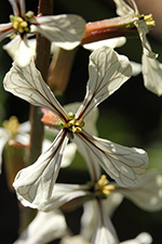the evidence was glaringly obvious but i only managed to connect the dots today. didn't it seem too much of a coincidence that radishes, arugulas, and lunarias all have similar looking flowers? the reason is because they all belong in the brassicaceae family, which also includes cabbages and broccolis. the 3 plants couldn't be any more different: radishes are grown for their roots; arugulas for their leaves; and lunaria for their dried seed cases.