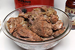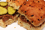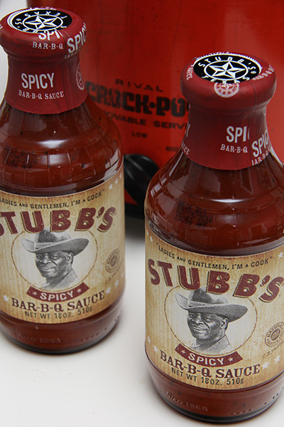 after pouring out the leftover liquids (and bits of onion and garlic) into a large pyrex bowl, i put back the pork shoulder into the crockpot and turned it on again. after pouring in the first jar of stubb's spicy hot sauce, i began to shred the pork with 2 forks. it was easy work since the meat was already falling apart. once everything was properly shredded, i added the second jar of barbecue sauce. spicy stubb's is good because it sweet and spicy and sour, exactly what i like. the last 2 times i sort of made my own through a combination of KC masterpiece, hot sauce, and cider vinegar.