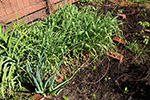 i dug up the daisies, separated them out, then planted them in a row in front of my plot (south side), where there's already a preexisting row of garlic chives. i planted 2 rows of tomatoes, one on each side of my plot. each row contains 3 tomatoes: best boy (facing the aisle), roma, and cherry. they're a little close to one another, but i don't have a lot of room. i also buried them a little deeper than normal, only because they've grown leggy in my sunlight-deprived backyard, so the lower i plant them the less likely they'll topple over. on the eastern side of my plot i planted a row of hot peppers (2). at one point my father stopped by and checked out my garden progress.