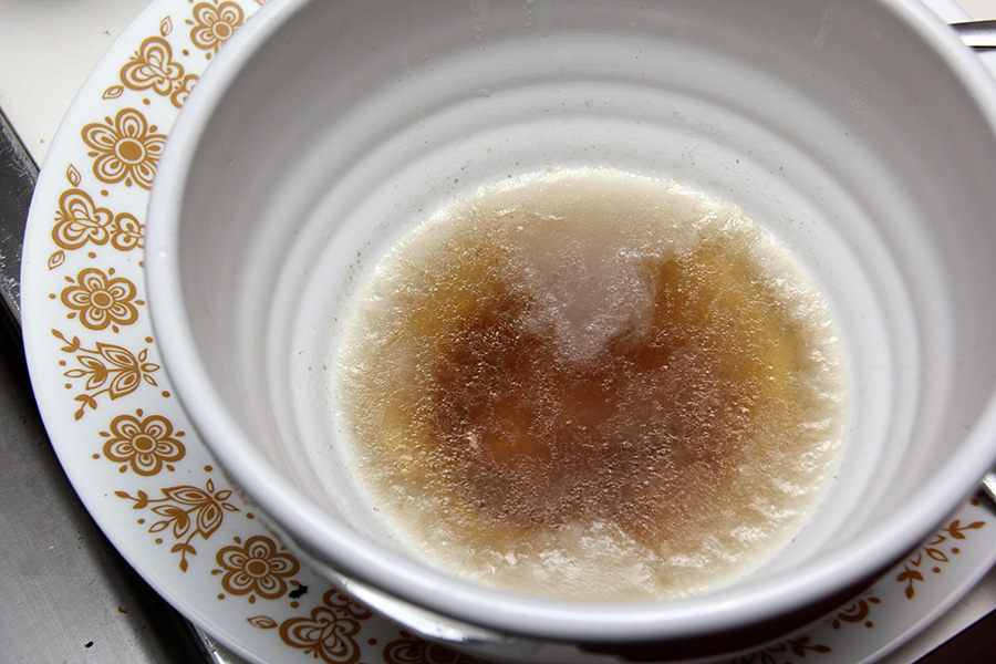 an hour later i was back inside the house, which was enough time for the crockpot to overflow for the second time. this time it was more serious, and liquid did drip onto the floor. this isn't just any liquid, but rendered fat, and need to be cleaned properly, otherwise it leaves a greasy mess. i ended up having to wash the trash can because it leaked all down its side.