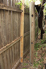 the rampant wisteria had snapped one of the fence posts a few years ago. my father was hoping the tree crew would put in one of the new posts (he'd bought a few days ago) when they put back the fence but they didn't do it. so my father and i ended up taking apart the fence and putting in the new post ourselves. it wasn't that hard, but requires 2 people. we even adjusted the alignment since the broken post had buckled the fence and took away half a foot from our property.