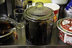 i was fine with just one batch of kombucha, but since we had 2 scoby's, my father suggested we do 2 in case one of them fails. my mother and sister were out shopping and i asked them if they could find any gallon glass jars, which they didn't. my father and i ended up driving to the cafe to pick up a 2 gallon glass jar that belonged to my grandfather (he used it to make wine steeped in chinese medicine).