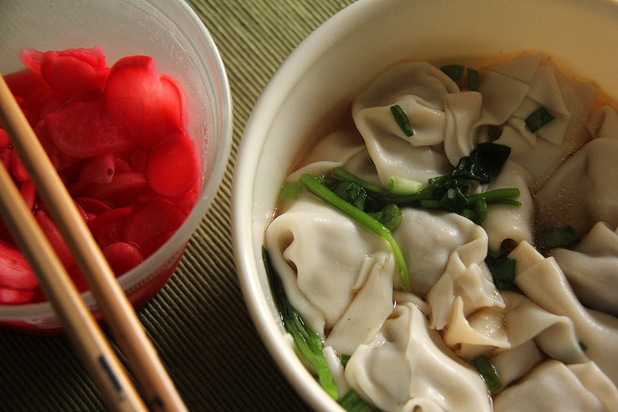 i went back inside the house to let todd and his crew work in peace, but we watched the proceedings from our dining room window with binoculars. my mother made some wonton soup for lunch.