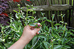 they have small pink flowers but aren't dianthus) near that same area. in the patch of backyard where some of the bamboos were cut, i discovered a few new shoots emerging from the ground. in a matter of weeks we may have a new bamboo screen again! inspecting the peonies, i noticed something had chewed eaten some of the flowerbuds. fortunately there are a lot of buds this year, so not a great loss. normally there are ants crawling all over the plants, i figured they'd defend the peonies against invaders. some of the buds were release small droplets; i tried one of them, it tastes like sugar water (no wonder ants love peonies).
