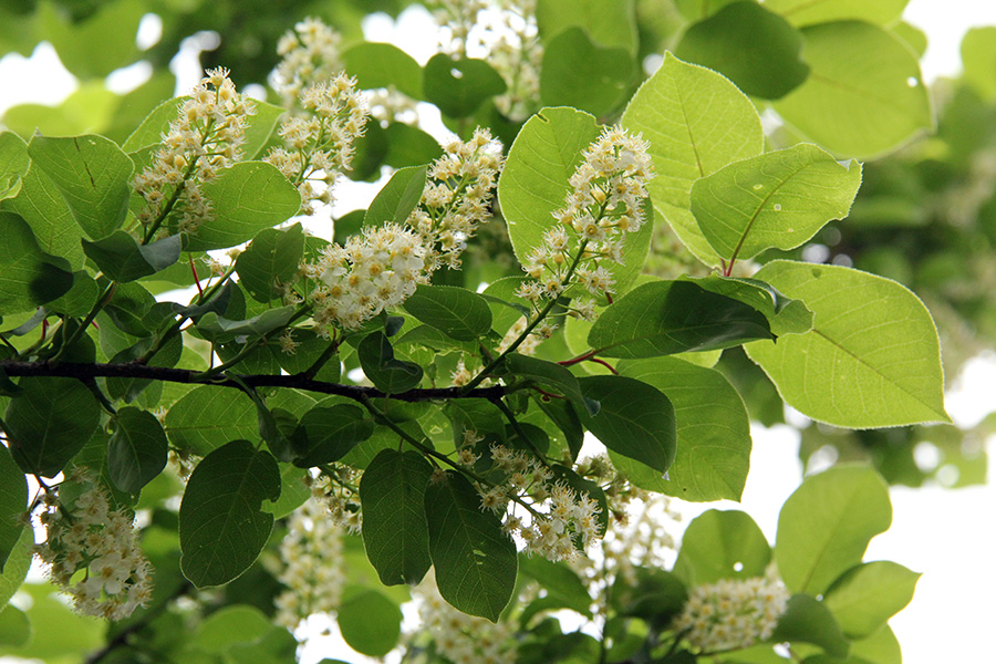 and i'm still not quite sure what that tree is that seemed to have sprouted next to the pussy willow. based on the flowers, i said it was a black cherry, but we have a black cherry in our belmont community garden plot, and the leaves don't look the same. plus, i'd never seen berries of any kind on this backyard tree, but it could just be because animals eat them all.