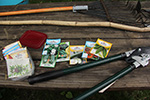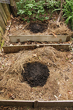 i spent a few hours in the backyard, first with the weeding, followed by the watering. it was a warm 70's day, and i just had on my t-shirt. i planted some zucchinis in the southwestern corner of the yard, in 2 manure mounds. while stirring the compost, i managed to snap the very old wooden handle in half. i was also going to trim some of the hedges eclipsing the front of the house, but i was already too tired by that point, and the temperature got cold after the sky went overcast.