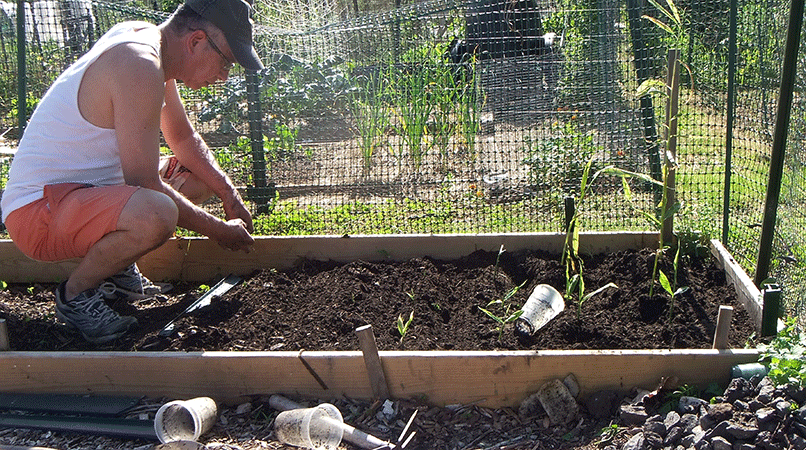 around 4:00 my father and i went up to the belmont victory garden. this was a critical weekend and those gardens that haven't been tended would be revoked by the garden committee. we haven't been there in weeks and when we arrived the place was covered in weeds.