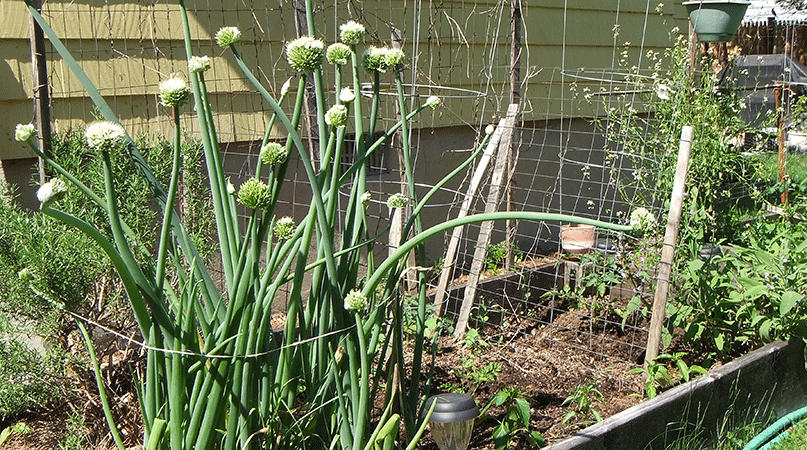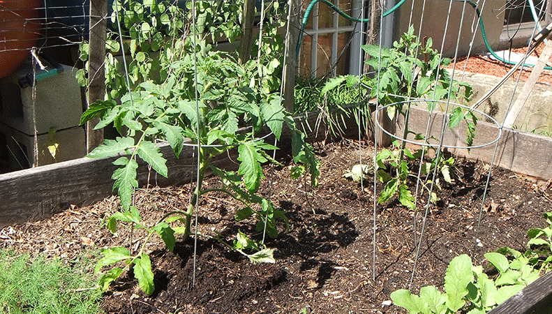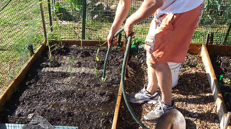 we weren't surprised to discover the one ginger my father planted as a test had already died from the nightly cold weather. after we finished weeding, my father planted the rest of his ginger (it's now finally hot enough) while i planted the garlic bulbs. i also planted 3 tomatoes (1 roma, 2 cherries) and 3 basils. plus, i relocated the onion sprouts that seemed to be emerging in the garden, leftover from the previous gardener. i moved the onions to the edges.