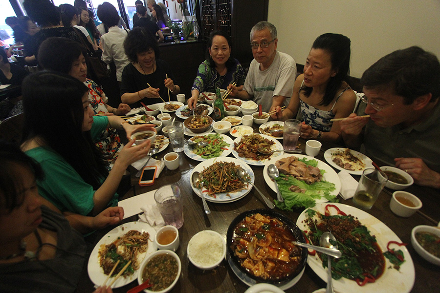 binbin's mother - who's in town until the 4th of july weekend - wanted to treat everyone to dinner, particularly my grandmother, since it's not often she makes a trip to come out and visit us. business was good and there was a crowd of chinese people waiting outside.