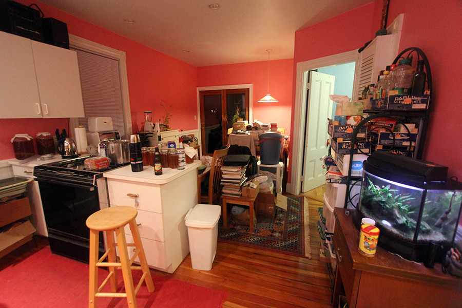 at least the contractors had the courtesy of waiting until 9:00 before they began banging upstairs. by 9:40 it was so loud the whole house shook and i was sure pieces of my ceiling would be crumbling down. besides redoing the floors of his kitchen (above my bedroom ceiling), steve was also replacing a few windows, putting in a secondary door above his front staircase, and installing a stove hood and accompanying wall vent.
