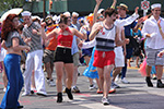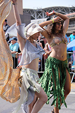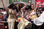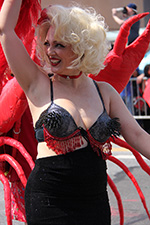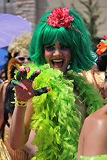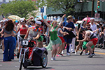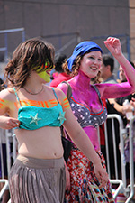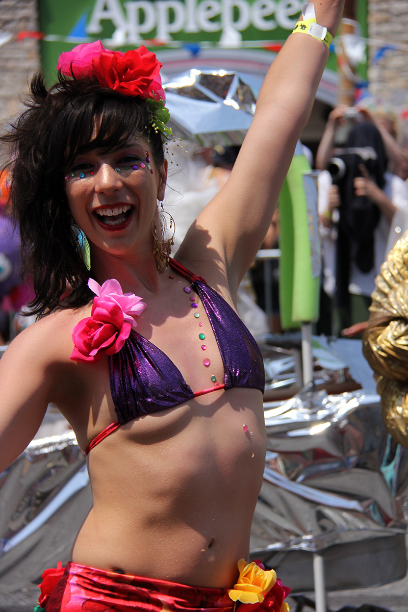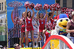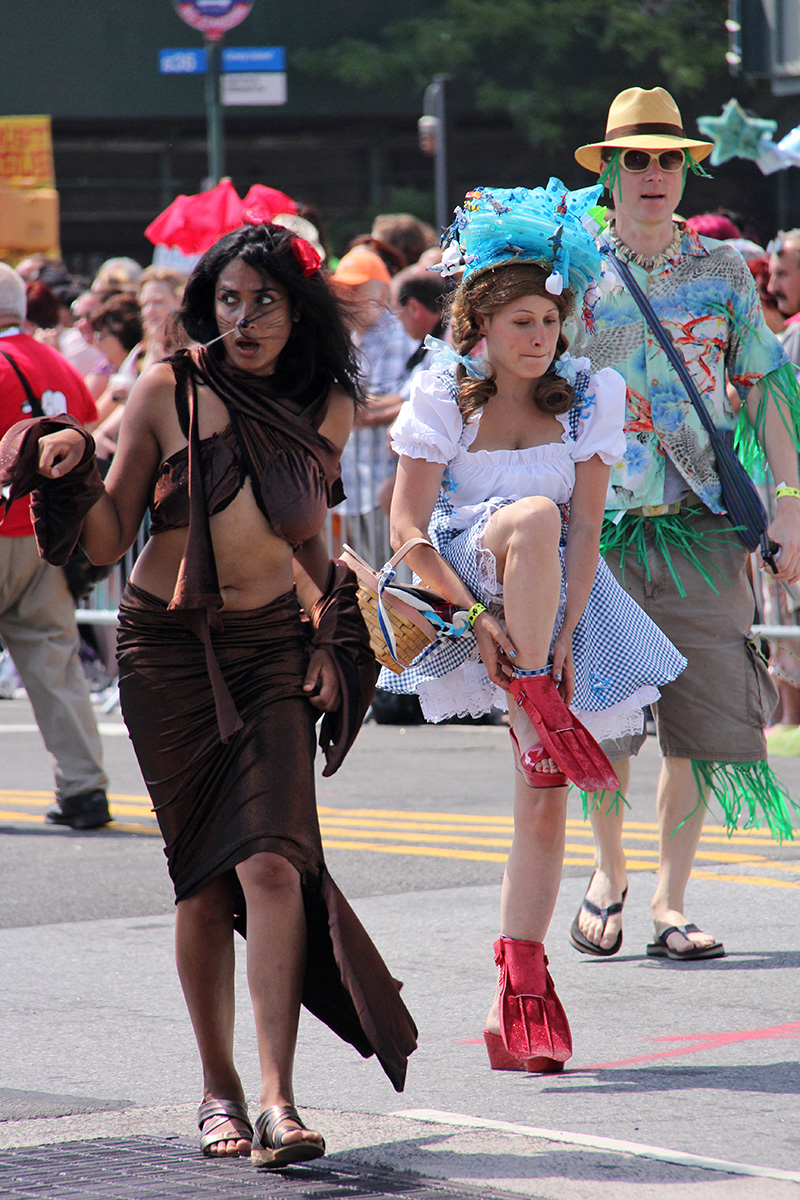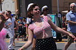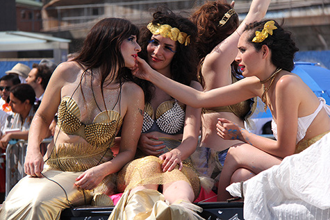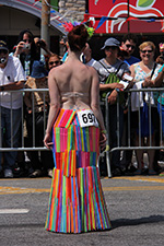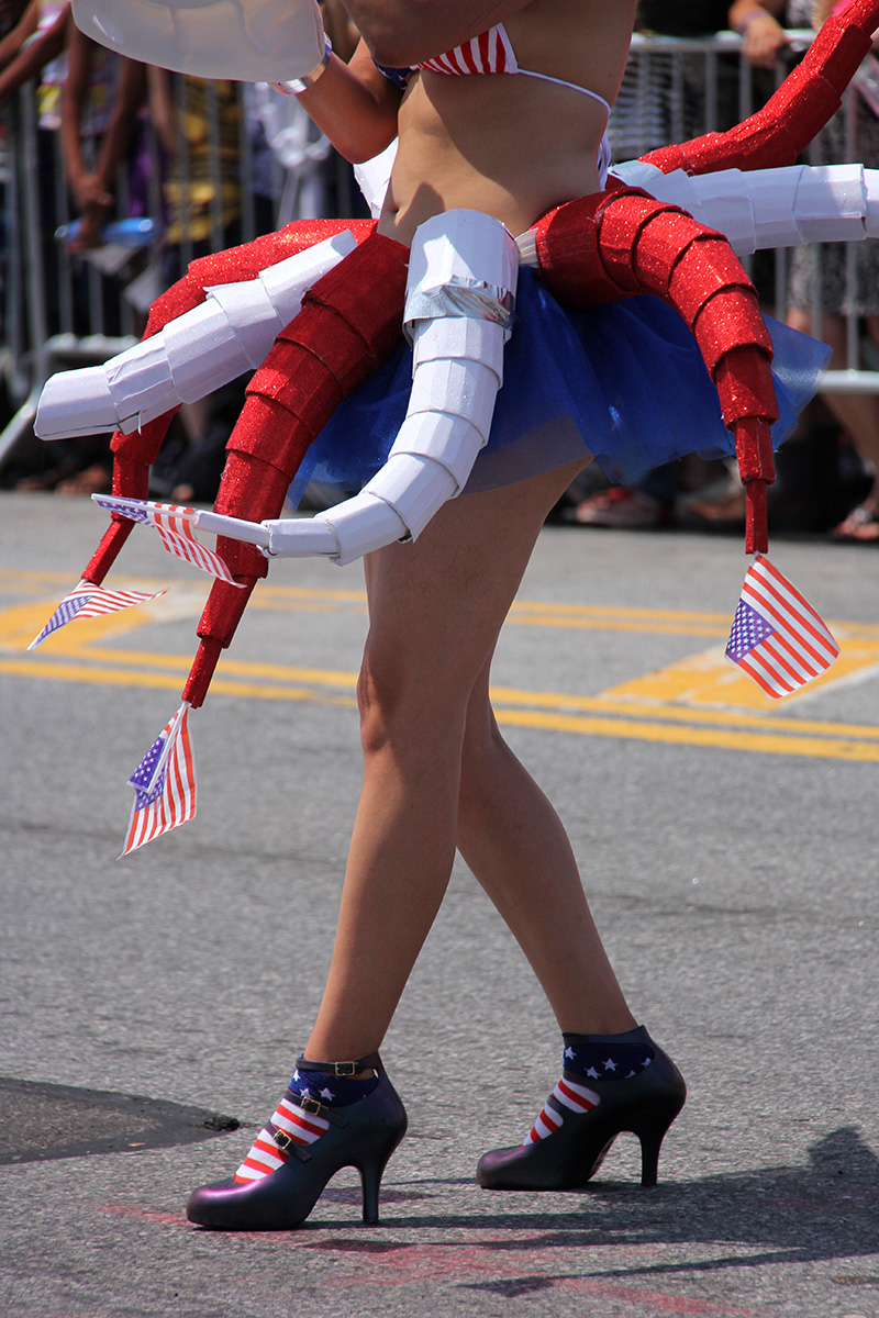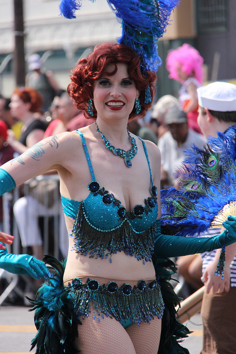 last year the barricades on the other side of the street was placed so far back that the parade marchers only interacted with the people on my side. this was great for photography. this year they finally got wise, and moved in the barricade, so now the mermaids interact on both sides, so there were a lot more photos of their backside. there also didn't seem to be as many photographers this year. last year they'd crowded the parade route so badly that sometimes i'd get photos of just photographers.