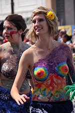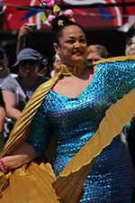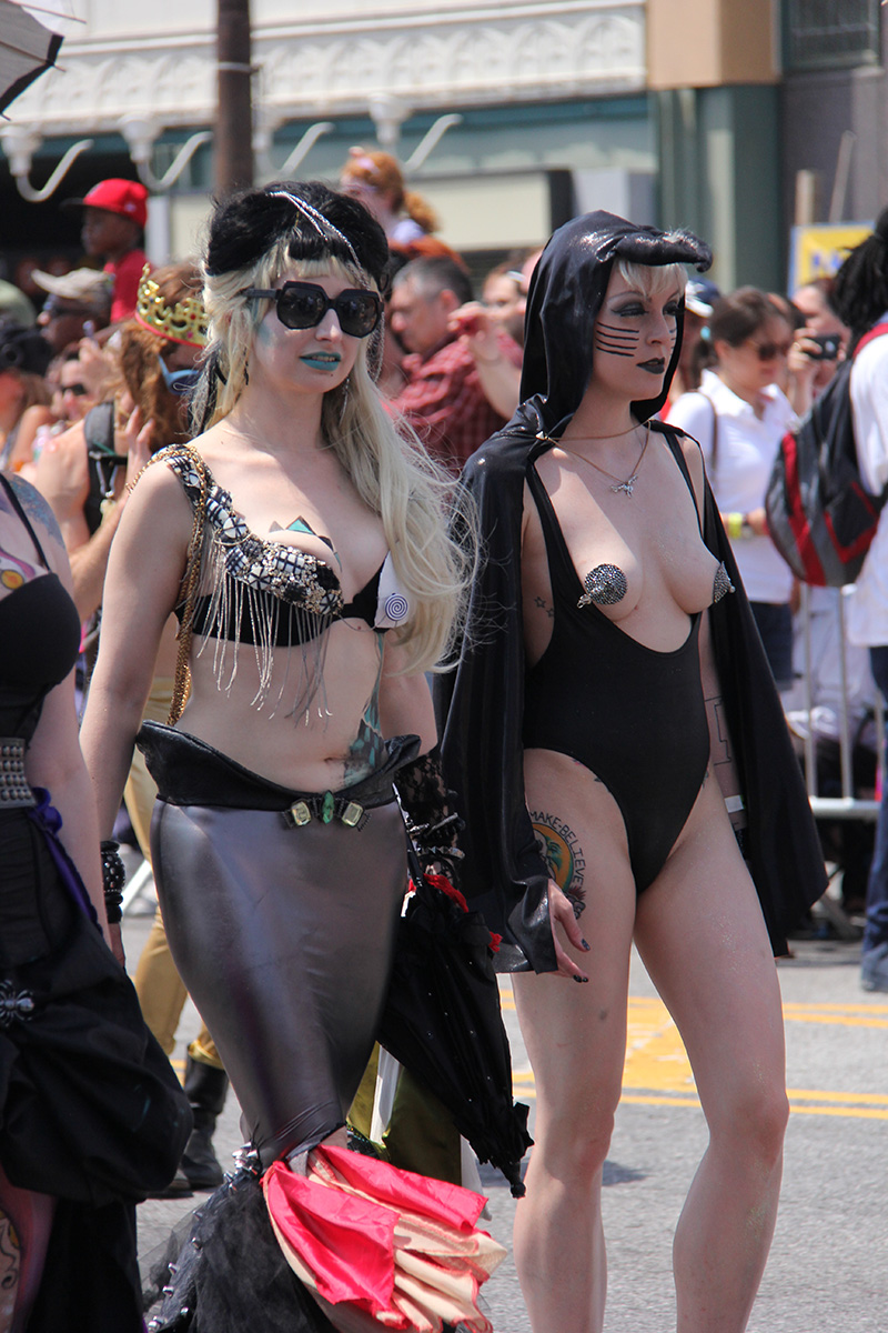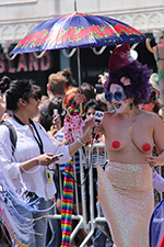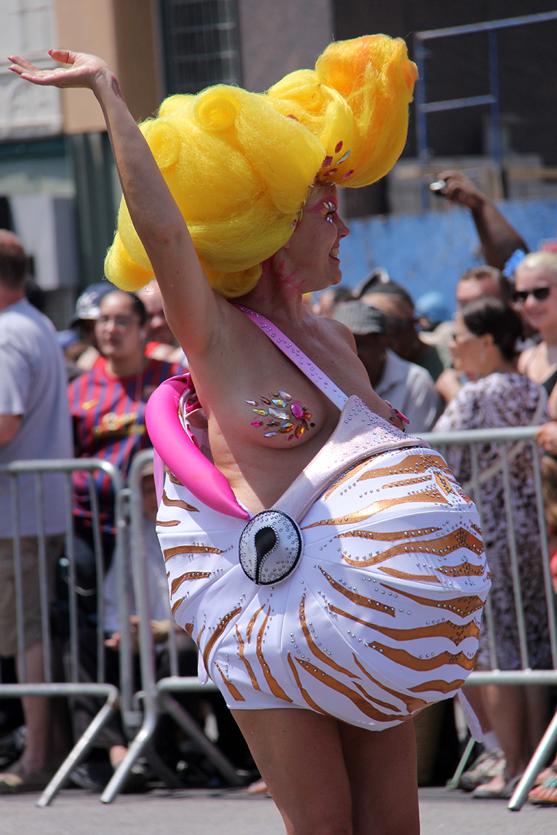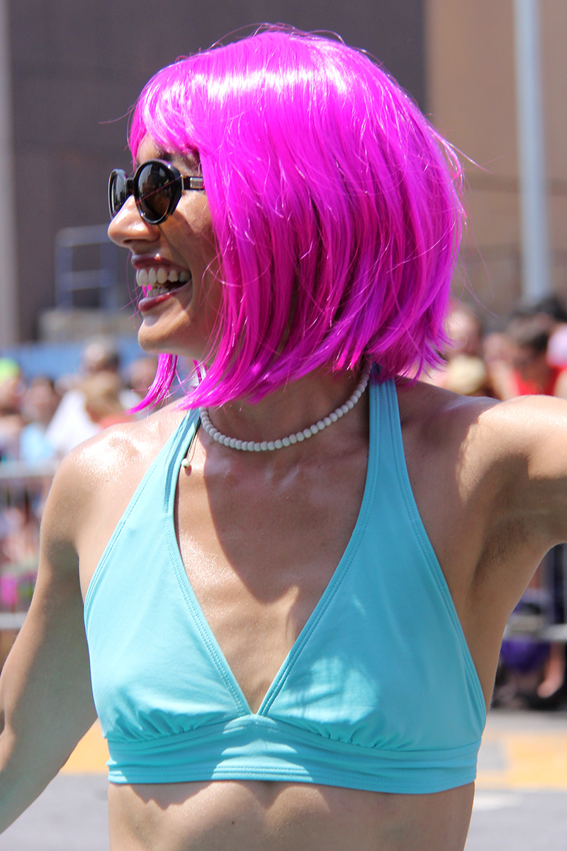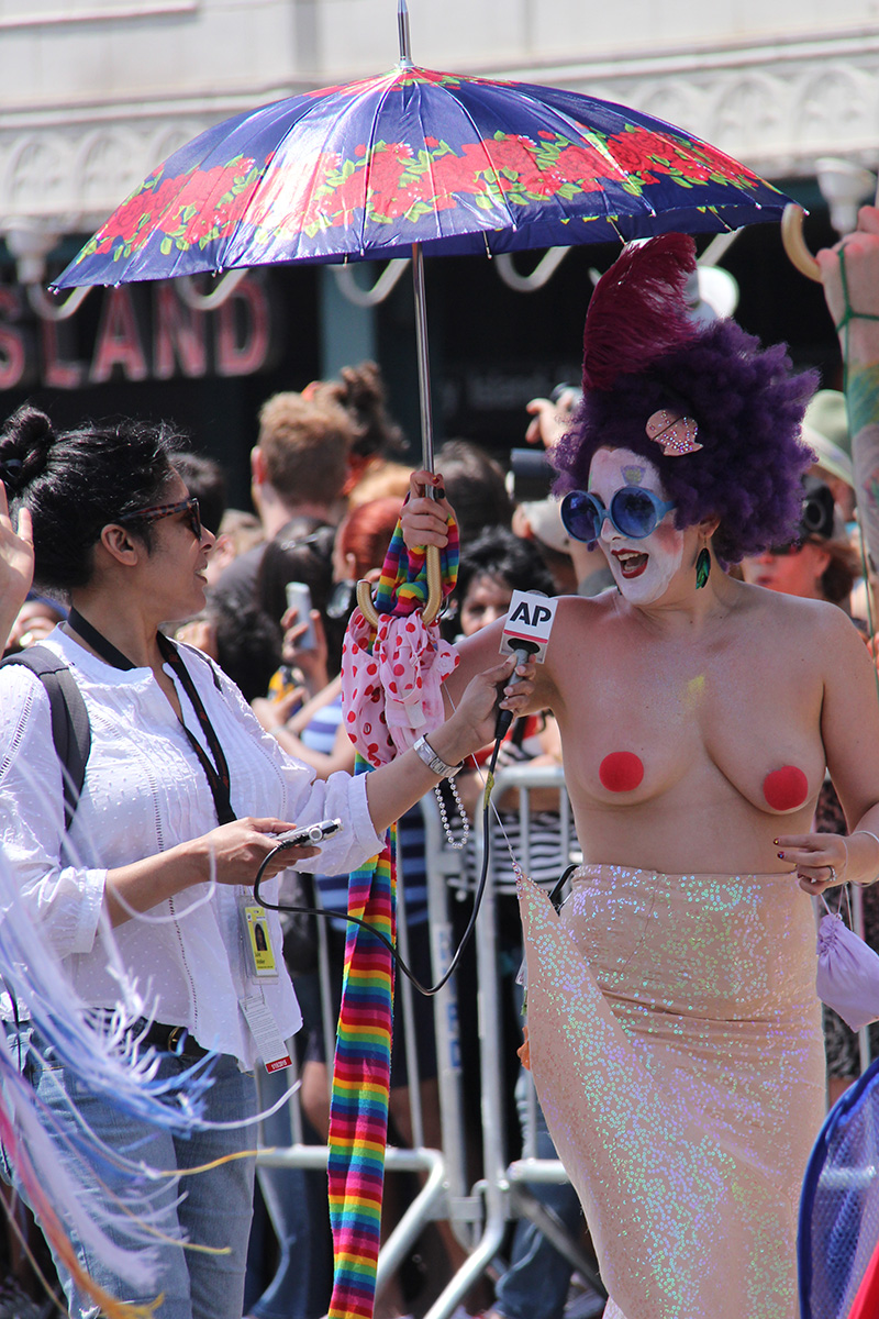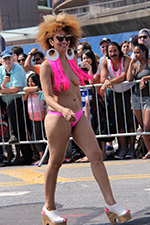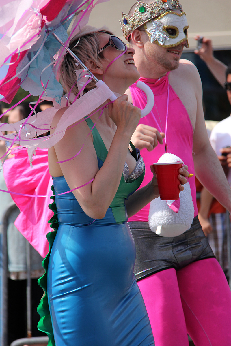 to my left was a petite old black woman with a pentax (?) prosumer camera. those usually have very long zooms which are great for parades. i thought she was with another group but when i noticed she wasn't talking to anyone, i chatted with her. she was here by herself, and comes to the parade every year. she'd been waiting since 11:30. we both cringed when some in the parade tried to glitter bomb the spectators (i did get some glitter on my arm, couldn't get it off). she wasn't very talkative and once the parade started, she stuck around for another hour before leaving (the parade itself last almost 3 hours total).