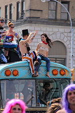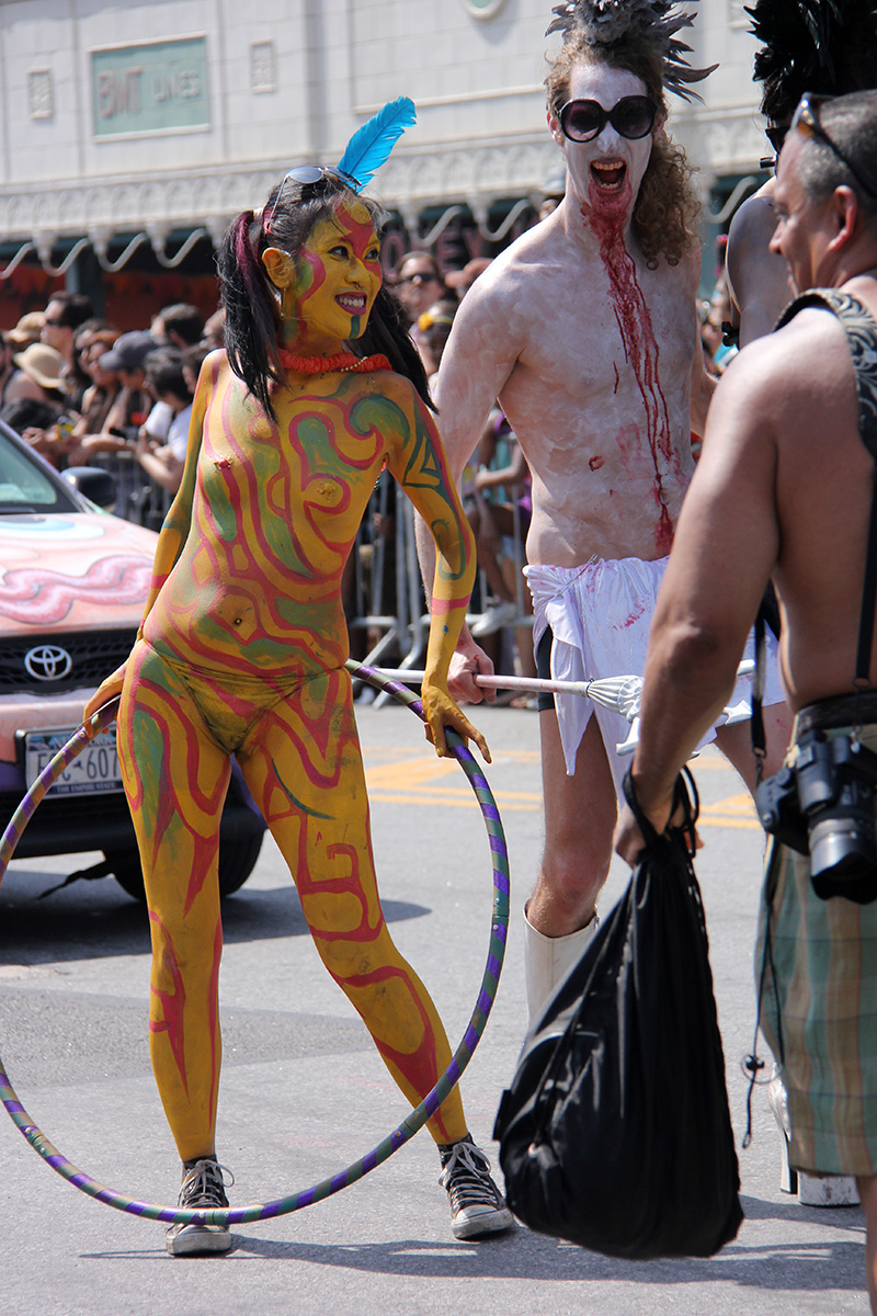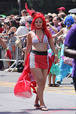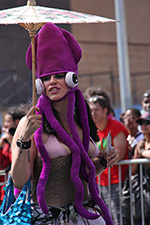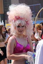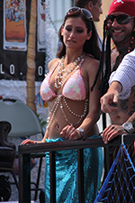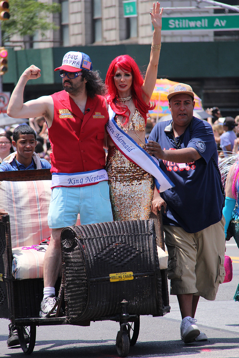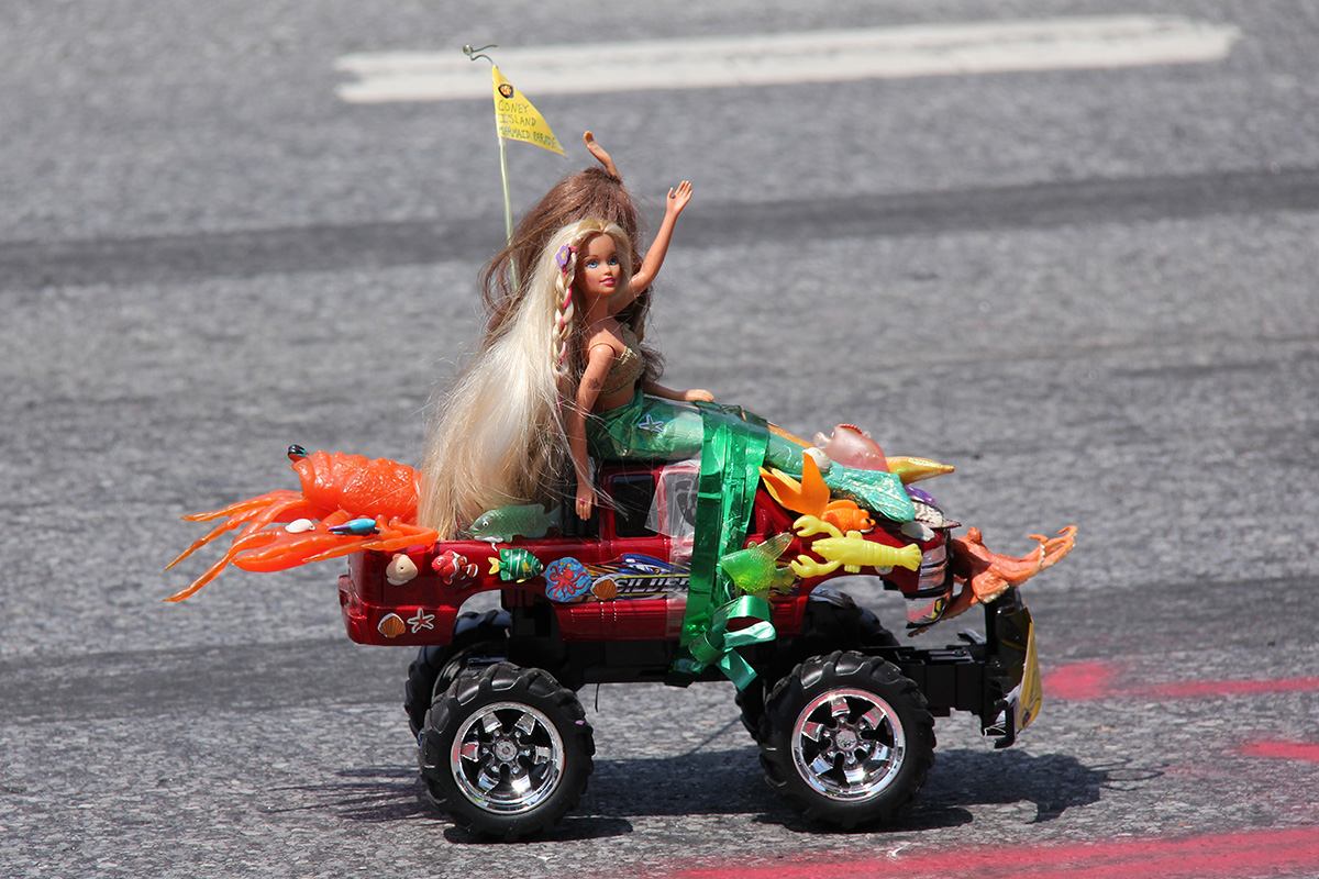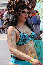 unlike the boston pride march where i got a lot of beads, i didn't get any at the mermaid parade. granted, the mermaid parade doesn't have the corporate sponsorship so private money is spent more on costumes than trinkets (which is a good thing). the demographic is also different. somehow my chances of scoring free stuff is better at an event with a lot of gay men than one that features bevies of scantily-clad women. go figure.