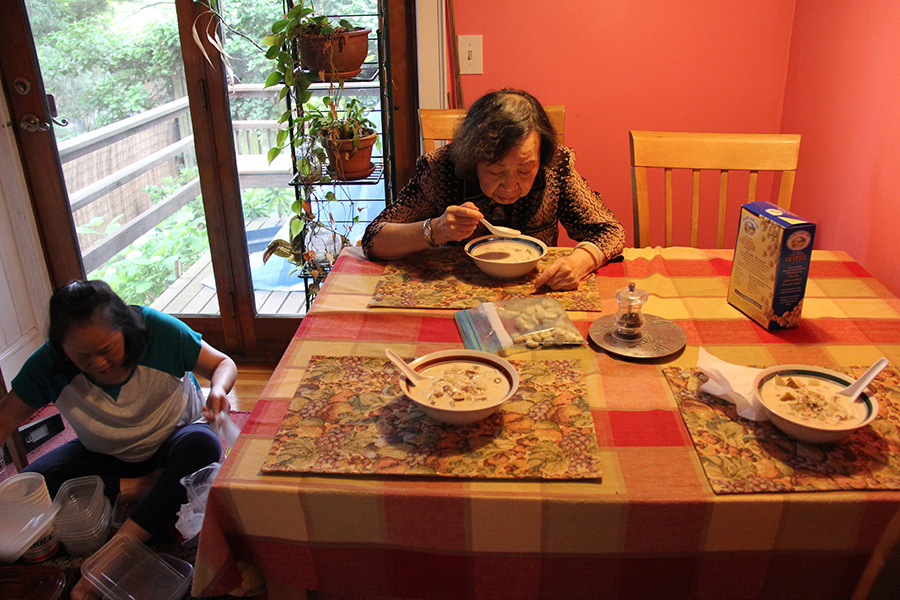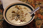 my mother brought my grandmother over around lunchtime so she could take a bath and have some homemade clam chowder for lunch. i don't think my chowder is particularly good - too watery - but my grandmother seems to like it,