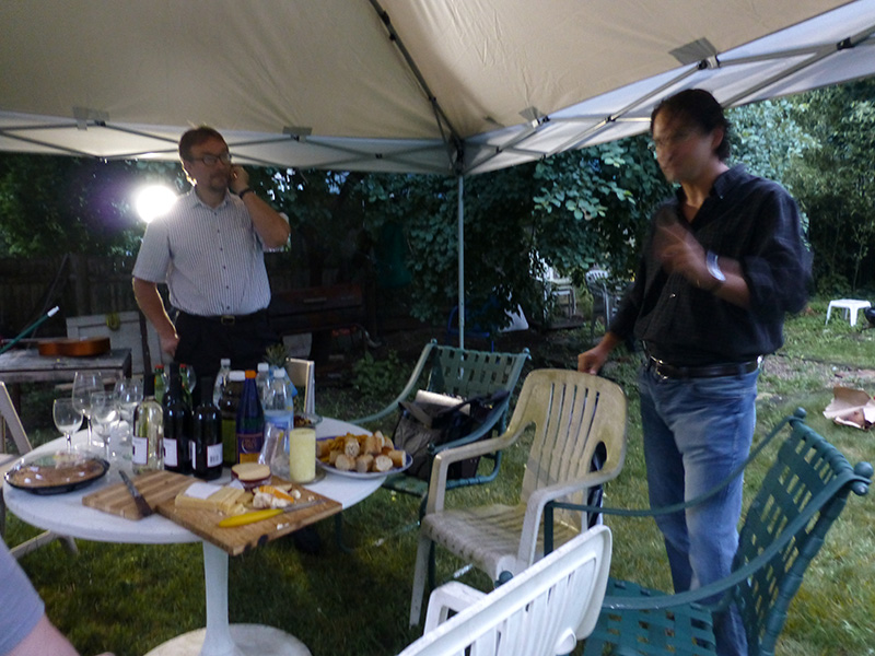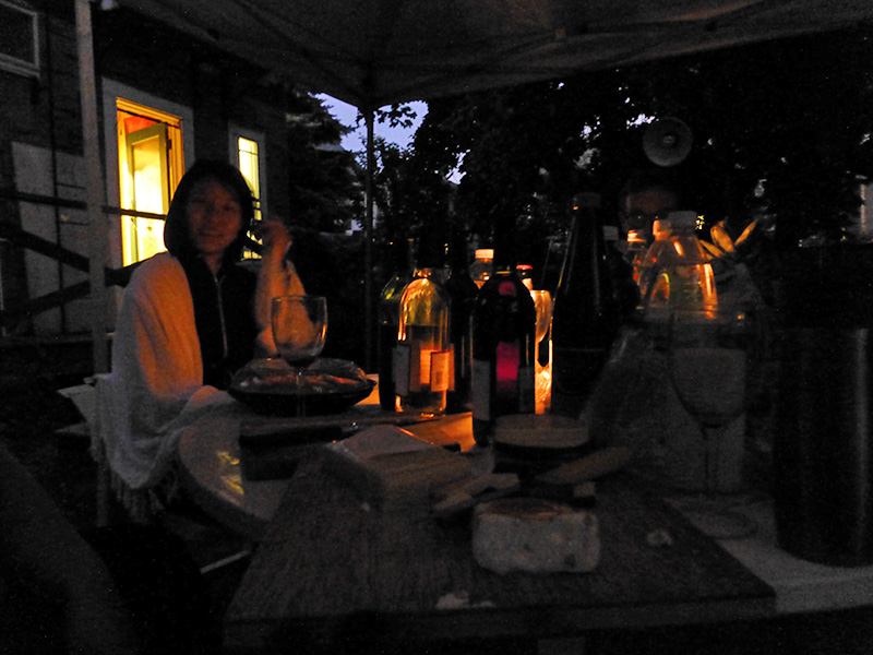 i didn't know what to expect, but the gathering was in honor of their new roommate, a girl from taiwan named bithiah in town studying math. apparently they have a tradition of making new roommates recite poetry. it's all very artsy and hippy-dippy. i don't have a great appreciation for poetry, and i find it pretentious. as people went around the table reciting poems, i found myself feeling like i was suddenly in church, forced to sit through a sermon, too polite to leave. at least there was wine and cheese and bread. and it was dark, so i could at least hide my apathy in the shadows. there was also a bit of drizzle, some mosquitoes, and the sound of early independence day fireworks. i left soon afterwards.